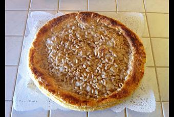 Ingredientes:2 placas de hojaldre ( comprado o casero)crema-inglesa250 gr piñones1 huevoazúcar al gustoReceta:Más fácil imposible!! El hojaldre se puede comprar o hacer hojaldre casero. Podéis ver la receta de la crema inglesa aquí. Estirar el hojaldre con rodillo en caso de ser casero, o desenrollarlo si es comprado. Verter la crema en el centro y pintar los bordes con huevo batido, tapar con la segunda placa de hojaldre, presionar los bordes y decorarlos con un tenedor. Pintar toda la superfície con el huevo batido y espolvorear con muchooos piñones y muchoooo azúcar!! Hornear en el horno precalentado a 200º durante unos 20 minutos o hasta que esté dorada.