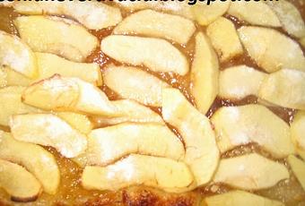 Distribuye la manzana en láminas por encima del hojaldre.Espolvorea con azúcar y canela la coca. Introduce en el horno y deja que se haga, (en mi horno a tardado 15 minutos), cuando veas que casi está reparte por encima de la coca una cucharada de licor de manzana o anís a tu gusto ( de todas maneras sale igual de deliciosa.