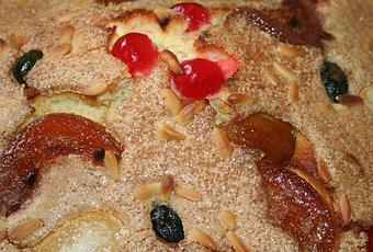 3. Batimos todo energeticamente y lo pasamos a un molde, untado con mantequilla. Ahora ya podemos decorar al gusto, nosotras hemos puesto piñones, fruta confitada y azúcar por encima, ¿y tu, qué le pondrás a tu Coca De San Juan?