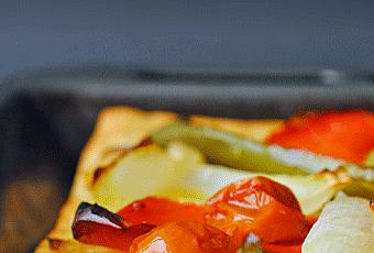Pincelamos la masa con una pizca de aceite de oliva virgen extra y colocamos sobre ella las verduras.
