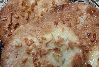 Removemos todos los ingredientes con la cucharay seguimos amasando a mano durante unos 5 minutos ...tapamos la masa y la dejamos reposar unos 30 minutosCogemos porciones de la masa y estiramos hasta dejarla muy fina"a mi me gusta muy fina"...Pincelamos la masa con aceite de oliva virgen extra....Cubrimos con bastante azúcar....Le incorporamos unos piñones y precalentamos el horno a 200grados introducimos la bandeja en el horno arriba y abajo, los dejamos hasta que veamos que están dorados los sacamos y....Rociamos enseguida con anis dulce"Del Mono"antes de que se enfríen esto hará que cristalice el azúcar