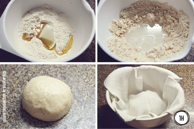 - Añadir el agua templada, mezclar con las manos hasta conseguir una bola que se despegue de las paredes.