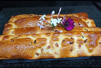 50 grs. Mantequilla100 ml. Leche20 grs. Azúcar10 grs. Sal25 grs. Levadura de panadero50 grs. Aceite de Oliva60 ml. AnísPiñonesELABORACIÓN:Lo primero que aremos será Tamizar la harina y le añadiremos el azúcar, la sal, la leche, el aceite y el anís. Iremos amasando lenta mente para hacer el fresado. Se puede amasar a mano.Una vez integrados los ingredientes le añadiremos la mantequilla a temperatura ambiente y continuaremos amasando. Cuando la masa esté ya homogénea le incorporaremos la levadura bien disuelta junto con un poquitín de agua para que se disuelva bien. Amasaremos un poco más hasta que la masa se desprenda de las paredes del bol. Pondremos un poco de harina en la encimera. Haremos una bola con la masa y la dejaremos reposar durante 10 minutos tapada con un paño.Cortaremos la masa en trozos de unos 100 grs aproximadamente. Y les daremos la forma de bola. Una vez hechas las bolas las dejaremos reposar unos 5 minutos tapadas. Añadiremos un poco de aceite en el rodillo y estiraremos la masa, dándole una forma alargada. Tiene que quedar una masa muy fina.