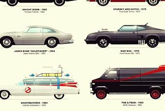 Alguna vez os preguntasteis que modelo y/o marca eran algunos de los coches más míticos que salían en películas y series, por ejemplo, de los 70 y 80? Con esta imagen se les podrá poner nombre a varios de ellos. No están todos los que deberían, es verdad, pero al menos es un inicio. Un buen inicio.