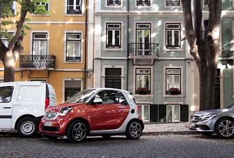 Así, todo parece normal en esta calle de Lisboa en la que hay un hueco de aparcamiento entre dos coches. Los conductores se aproximan a aparcar y, en mitad de la maniobra, los dos vehículos comienzan a encogerse, creando el #smarteffect y haciendo que aparcar el vehículo sea infinitamente más sencillo.