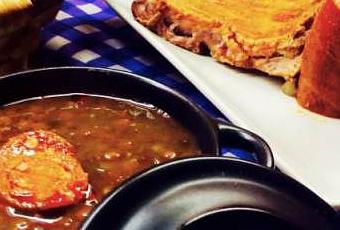 Cocido de lentejas guisadas y en crema con sus sacramentos.