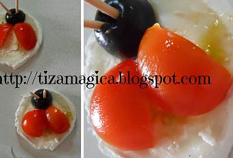 Una nueva receta para sorprender a los más pequeños de la casa o a los adultos, quizá. Se trata de unas sencillas mariquitas hechas con queso, tomates cherry, aceitunas negras y palillos. Se puede poner como base unas pequeñas tostadas. Os dejo el vídeo y el resultado final. ¿Os animáis a probarlas? ¿Qué os parecen?