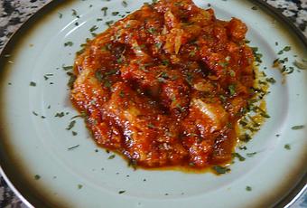 Dejamos cocer hasta que se consuma el caldo del tomate y el pescado.