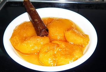 En una cacerola ponemos el resto de los ingredientes y la ponemos al fuego. Moviendo todo y, antes de que empiece a hervir, incorporamos los melocotones. Lo dejamos cocer todo hasta que haya reducido. Una vez reducido, apartamos.