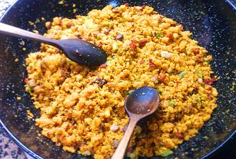 11. Una vez alcanzado el punto deseado, se retira el perol y se sirve acompañado de naranjas, huevo o aceitunas.