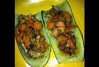 - Rellena los calabacines con el salteado de verduras y listo para comer.