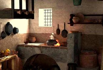 reconstrucción de cocina romana.