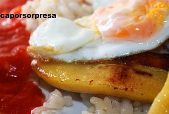 ARROZ BLANCO CON HUEVO Y SALCHICHAS