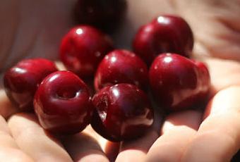 Esta cosecha se hace a mano. Las cerezas son delicadas y los trabajadores subidos en escaleras y con unos cestos colgando del hombro van recogiéndolas una a una desde bien temprano, para que la fruta esté en su punto.
