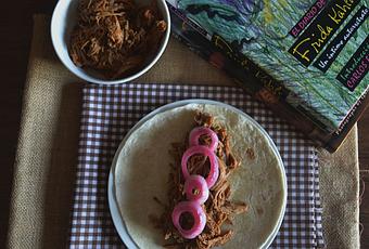 Hace unos años mi hermana me regaló un libro en el que hablaban de las fiestas que hacían en la Casa Azul y venían algunas recetas. No pude menos que echarle un ojo y me inspiré para hacer esta deliciosa cochinita pibil. Yo la hice en crockpot e hice mi propia pasta de achiote ya que no la encontré por ningún lado. Os dejaré como la hice yo en la propia receta.