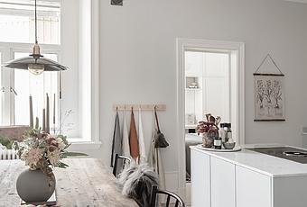 Cuando nos encontramos con una cocina pegada al salón siempre miramos ese tabique y nos preguntamos: ¿Como quedará? Eliminar el tabique que divide ambas estancias es una de las reformas que más es demanda en las reformas. Y es que tanto a nivel estétido como de practicidad es más que evidente. Entre los Pros, nos encontramos con mayor maplitud y gran cantidad de luz, una de las razones que debemos de tener muy en cuenta si se trata de una vivienda poco luminosa y con pocos metros cuadrados. De igual manera todos los espacios abiertos nos dan visualmente un espacio que parece mucho más grande y si a su vez, disponemos de poco espacio, podemos utilizar la transición de ambas estancias para ubicar una zona de comedor, como puede ser una isla o mesa de centro. Emplear los mismos materiales, siempre es un éxito. El principal objetivo es crear un ambiente coordinado y armonioso, por lo que, escoger un mismo pavimento para ambas zonas será un acierto seguro. En cuanto al mobiliario podemos escoger un mobiliario discreto y que pase desapercibido como es el caso de esta cocina. Desventajas que debemos de tener en cuenta. Los malos olores que se generan en la cocina es uno de ellos, pero una buena campana extractora será más que sufiente. Los ruidos que se crean en una cocina tambien se ha de tener en cuenta, los electrodomesticos como son el lavavajillas, la lavadora, secadora … escoge aquellos que puedas retirar de la cocina para una zona de lavandería o escoge electrodomésticos silenciosos y activalos durante el período nocturno. El desorden, es importante que estés concienciado con ser ordenado, el tener que estar en una zona de confort como es el salón y estar viendo los platos, cubiertos… sin recoger, irrumpe nuestro bienestrar. Aquí os dejo un bonito apartamento nórdico con espacios cubiertos de luminosidad y amplitud. Inspirate!!!