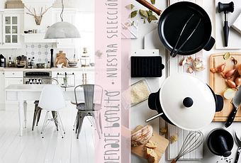 Hace tiempo que no publicábamos en el blog un post de cocinas (con lo que nos gusta esta sección!), así que hoy toca inspiración para cocinas bonitas y, además, menaje para darle ese toque especial. Porque en decoración, los complementos bonitos son como los zapatos y el bolso en la moda: pueden cambiar completamente un espacio. Un mismo mueble, acompañado de diferentes colores, objetos y estilo, nos transmitirá cosas distintas.Es por eso, que cada día cuidamos más las pequeñas cosas que compramos. Repito: son como los complementos en la ropa, acaban el look definiendo el estilo. Pues en DECO igual. De hecho, a muchas personas que les cuesta visualizar un espacio antes de decorarlo, o hacer composiciones armoniosas con elementos, les ayuda el utilizar este truquillo de pensar que es como si lo estuvieran "vistiendo". En las cocinas pasa lo mismo. Si tenemos mueble moderno y la queremos más cálida y acogedora, podemos poner menaje en tonos pastel; si lo que buscamos es el punto divertido, apostemos por el flúor; y si lo que perseguimos es que quede con un toque industrial, nos toca utilizar elementos de acero, y no salirnos de la gama de los grises. Os animáis a darle un cambio a vuestra cocina con menaje bonito?