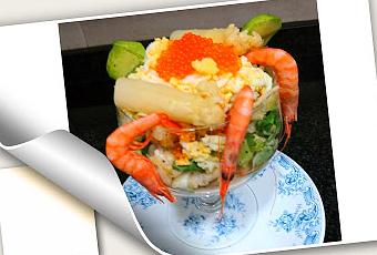 Esta es una receta que me encanto de un blog que acabo de descubrir. Encantan todas sus recetas como está la hemos degustado en casa y nos ha encantado. Es del blog http://blogexquisit.blogs.elle.es. INGREDIENTES PARA 4 PERSONAS:200 gr de lomo de rape cortado en dados in sin espina300 gr de langostinos cocidos2 aguacates DE FRUTERIA Y VERDURERIA ABRIL1 bote de puntas de espárragos blancos unas 8 unidadesLechuga variada DE FRUTERIA Y VERDURERIA ABRIL1 naranja pelada a lo vivo y troceada2 huevos duros DE FRUTERIA Y VERDURERIA ABRILINGREDIENTES PARA LA SALSA:150 ml de mahonesa1 C/S kétchup1 C/S de zumo de naranja1 C/S coñac1 C/S nata vegetalUnas gotas de tabascoELABORACIÓN:Empezaremos hirviendo el agua, y sumergir en el agua caliente el rape durante 3 minutos. Retiramos y lo introduciremos en un cuenco. Añadiremos los langostinos pelados en el cuenco. Reservaremos las puntas de los espárragos para la decoración y trocearemos el resto. Los añadiremos al cuenco. Pelaremos el aguacate y reservaremos ocho lonchas para la decoración y trocear el resto. Añadiremos al cuenco. Rallaremos las yemas de los huevos para la decoración y trocearemos el resto y lo añadiremos al cuenco. Prepararemos la salsa mezclando con los ingredientes. Mezclar con el rape y el resto de los ingredientes. En el fondo de las copas añadiremos la lechuga y a continuación repartir el resto del coctail.Decoraremos con las puntas de espárragos y la yema rallada yo le añadido una huevas de trucha.