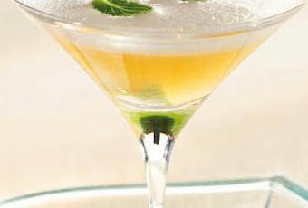 Preparación:Unas hojitas de menta Eche el ron, el curaçao, el zumo de lima, el jarabe, la clara de huevo y hielo en la coctelera y agítela con vigor. Después vierta la mezcla colada en una copa de cóctel ancha. Decórelo con la menta.