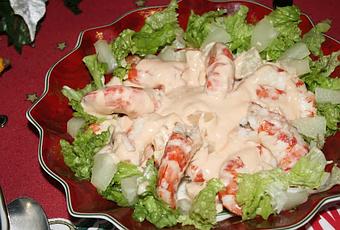 - Coloca los langostinos y la piña en la base ,cubre con la salsa y pon la lechuga alrededor un poquito aliñada.
