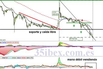 A la vista está que no fue, si no otra trampa alcista más. Algunos de los que estaban pillados dentro, consiguieron hacer subir el valor y volver a distribuir. A los pocos días, volvemos a perder el 1.15, y como consecuencia entra en caída libre, aunque no descarto que la resistencia 1.15 ahora sea testeada.Si somos capaces de ver el Koncorde, la mayor parte del volumen de los últimos días, son ventas de mano débil. Gente que se ha quedado pillada en el valor y que ahora sale al precio que puede.Codere en tres meses ha perdido un 70% de su valor, y lo peor es que las noticias que escuchamos sobre la compañía no invitan al optimismo, todo lo contrario.Espero que en su momento me hicieras caso, si no es así, haz examen de conciencia y piensa hasta donde estás dispuesto a que lleguen tus pérdidas, y actúa en consecuencia.