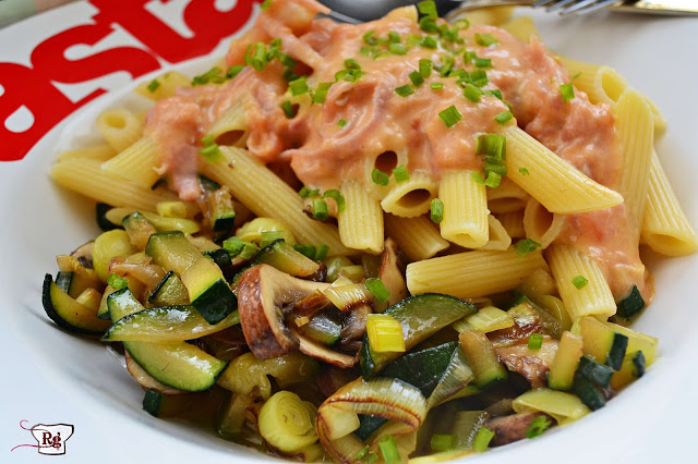 5-Pasta al vozka con calabacín y bacon de Pan, uvas y queso