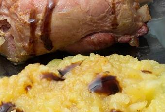 1 codillo asado3 manzanas1 tarro de chutney de mango, lima y jengibrecrema balsámica de pedro ximenez