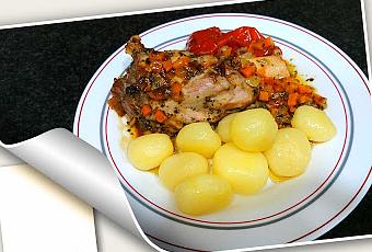 Esta receta que elaborado alguna que otra vez. Pero nunca las avía elaborado de ternera. INGREDIENTES PARA CUATRO PERSONAS:1 puerro2 zanahorias1 cebolla1 tomate entero2 codillos de ternera partidos por la mitadAlbacaOréganoPimienta negraUn vaso de vino blanco½ vaso de agua1 pastilla de caldo de carneELABORACIÓN:Picaremos las verduritas y las añadiremos en la olla a presión. Añadimos un chorrito de aceite y pochamos las verduras. Cuando estén pochadas añadimos las especias, le damos un par de vueltas y añadimos el vino hasta que reduzca. Retiramos de la olla y reservamos las verduritas aparte. Introducimos en la olla los codillos y añadimos por encima el sofrito, el agua y la pastilla de caldo. Ponemos la olla al fuego una media hora. Yo he acompañado estos deliciosos codillos con unas patatas en basadas pasadas un poco por la sartén.
