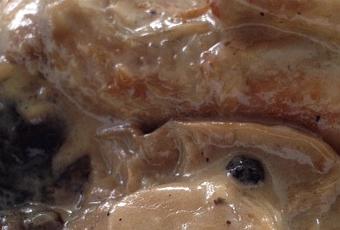 Una vez hechas las setas, pasamos todo a la cazuela con las codornices.Echamos la pimienta al gusto, el laurel, el vino blanco y el caldo de ave. Dejamos a fuego lento hasta que vaya reduciendo quede espesa. Yo he echado dos cucharadas de nata baja en grasa para que ligue un poco más y quede más suave.