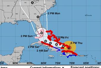 A las 5 de la tarde el huracán Irma, que aún permanece en categoría 5 de la Escala Saffir-Simpson, se ubicada en la latitud 20.9 Norte y longitud 71.1 Oeste.