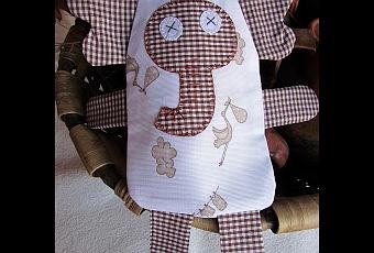 El cuerpo de piqué con cigüeñas, y para el resto un vichy de cuadritos marrones.