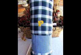 No quería acabar el mes sin enseñaros el cojín que le hice a mi sobrino Pablo, por encargo expreso de los Reyes Magos.Como es igual que el de sus hermanos: Nacho y Mario, tuve que poner la inicial de su nombre para que no se peleen. Digo que no se peleen por identificar el cojín, por lo demás que hagan lo que quieran que están en la edad.