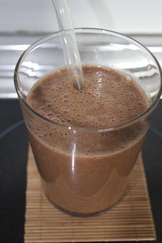 2 cucharadas de postre de algarroba. Si quieres puedes cambiarlo por cacao puro o poner mitad y mitad, pero la algarroba es más saludable.