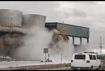 La caída de la estructura habría provocado rompimiento en la estructura de una de las torres de enfriamiento, por lo que las personas tuvieron que ser desalojadas de la zona con el fin de evitar tragedias.