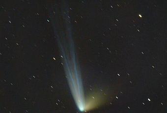 Tras rozar el horizonte occidental de las noches del verano septentrional, el cometa PanSTARRS (también conocido como C/2014 Q1) se elevó más arriba en los cielos del invierno meridional. El cometa, un visitante del Sistema solar interior descubierto en agosto de 2014 por el prolífico proyecto de exploración panSTARRS, fue captado aquí el 17 de julio desde el Observatory Mackay (Queensland, Australia). El campo de visión abarca un poco más de 1 grado. Cruzando rápidamente el cielo, dos días después el PanSTARRS se encontraba más cerca de la Tierra. La fotografía telescópica, alineada para seguir el rápido movimiento del cometa, muestra también los rastros de las débiles estrellas de la constelación Cancer. Impulsadas por el viento solar, las colas azuladas de iones del PanSTARRS se alejan del Sol. Conducidas por la presión de la luz solar, la cola amarillenta y más difusa de polvo es empujada hacia fuera y se retrasa de la órbita del cometa. Los próximos días, el cometa, un buen objetivo con prismáticos desde latitudes meridionales, barrerá el cielo cerca de Venus, de Júpiter y de la brillante estrella Regulus.