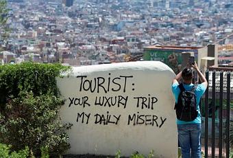 La política turística de la Sra. Colau es nefasta, nefasta para Cataluña, quiero decir, y conduce a una pérdida significativa de ingresos en pequeñas y familiares empresas que viven de los incontables visitantes que se dan cita en la Ciudad Condal, o al menos, se daban en el pasado. Numerosos cruceros trasladaron su sede a valencia; la cadena estadounidense CNN aconseja no visitar Barcelona y recurrir a Valencia también, como alternativa perfectamente razonable. La pintada en la imagen que ilustra nuestra entrada de hoy, pone tilde al patetismo de independentistas con pulsiones más que ideología razonada y razonable. No rotulan en español por aversión a la lengua de todos los ciudadanos de este país; tampoco en catalán, porque podria resultar incomprensible a quien lo leyese allende Granollers, y terminan por utilizar una lengua extranjera para proponer una mentira. Glorioso.