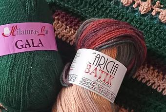 Gala de Hilaturas LM y Caricia Batik Fusión, esta combinación me pareció muy otoñal, me gustó.
