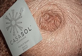 Usé el Lino Flamé de 3 cabos de Casasol en color salmón, cuatro ovillos, unos 800 gramos. Lo compré en la Mercería El Duende del Patchwork, aquí en Jerez.