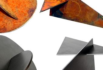 Otro de nuestros últimos diseños con gran aceptación son las ESCULTURAS MACLADAS con acabado de acero u óxido. Estas composiciones de dos piezas se presentan en un modelo ovalado y triangualar. Ambas esculturas podéis encontrarlas en A-cero In por 39,95€/unidad (acero u óxido).