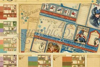 Como habréis visto a lo largo de todo el año, he ido publicando cada mes una tarjeta para darle la bienvenida a ese mes en cuestión. Para elaborar las tarjetas utilicé una colección de Graphic 45 que se llama "Place in time":
