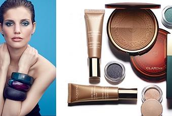 Como una ninfa surge la mujer Clarins, misteriosa, con la tez luminosa, la mirada iridiscente y unos labios coloreados de forma natural pero con un toque glossy.