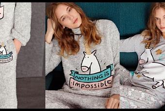 La colección en total esta formada por 5 pantalones, 5 camisetas de manga larga fina y 3 jerseys mas gorditos. De hecho han utilizado el fluffy, ese material que es tan agradable al tacto y da tanto calor para el invierno mas frío. También podemos encontrar una manta, calcetines, zapatillas, neceser y un pack de braguitas.