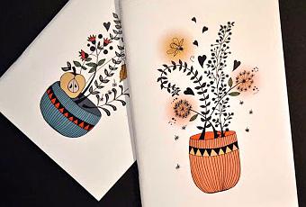 Láminas, postales, libretas, tote bags y calendarios con el halo único y especial del maravilloso espectro nocturno de la luna, plantas mágicas, luciérnagas, tés calientes, insomnios, sueños, constelaciones y amor.