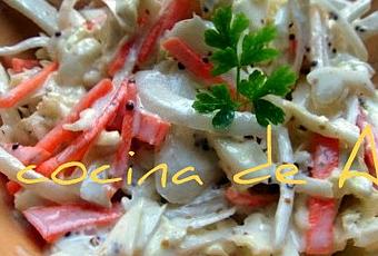 Ensalada de col típica de Estados Unidos y el Reino Unido principalmente. Nunca la había probado y para hacerla elegí la receta del magnífico blog de Carlos Dube (Mercado Calabajío), que dice que es la auténtica. No lo sé, lo que sí os digo es que es deliciosa y refrescante.