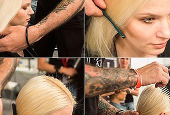 - A continuación, para crear un efecto más pulido en la parte frontal, aplicar un poco de fijador para afianzar el cabello y conseguir el efecto tirante final.