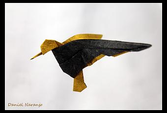 En mis pliegues, el colibrí es normalmente un ave asociada a la esperanza. Ligera, leve, fugaz. Esperanza al fin de cuentas.Este modelo en particular es una modificación de las gaviotas que hice hace cerca de una década y que se publicaron en el libro Papel, Piel y Palabra. Como ellas, también tiene la posibilidad de ser construida en dos sentidos, de manera que si se hace con un papel de bicolor permita obtener dos versiones, ambas mostrando los colores empleados.