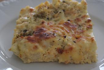 1 coliflor mediana2 huevosMozzarellaParmesano rallado2 vasos de leche3 lonchas de pechuga de pavoPimentónCebolla en polvo ( opcional)Orégano