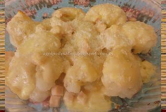 Ingredientes para coliflor con bechamel de jamón y queso (2 personas):- 1 coliflor pequeña