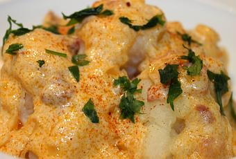 Hola chicos, hoy os traigo un receta diferente y con una salsa que para mí me encanta. Usando el yogurt griego de cabra tiene un sabor parecido a la torta del Casar que hace que la receta le dé un sabor muy especial. Esta receta no va a ser la última vez que la hagáis, os la recomiendo.Ingredientes1 Coliflor pequeña120gr Jamón Serrano o Ibérico1 Yogurt Griego de cabra½ CebollaHarinaTomate fritoAceite de olivaPimienta negraPimentón de La VeraPerejilYSal