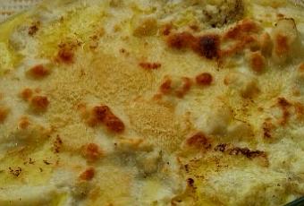 Esta es una receta que en casa nos en canta, fácil de elaborar y deliciosa esta receta la solía elaborar mi queridísima yaya. INGREDIENTES: 1/2 Coliflor grande o 1 mediana 250 gr de taquitos de pavo Queso rallado Una patata gordita PARA LA BECHAMEL: 50 gr de mantequilla 50 gr de harina De maíz 400 ml de leche Sal, pimienta y nuez moscada. Queso rallado ELABORACIÓN: Lavamos y cortamos la coliflor y la patata, y lo ponemos a hervir.Mientras en un cazo, ponemos la mantequilla y la harina de maíz Agregamos la leche y la nuez moscada la sal i la pimienta con la ayuda de unas varillas, vamos moviendo, hasta que cueza y espese. Ponemos la coliflor y el pavo en una fuente de cristal para horno Cubrimos con la bechamel y con el queso rallado. Metemos al horno a 180ºC durante 15 minutos, y después gratinamos.